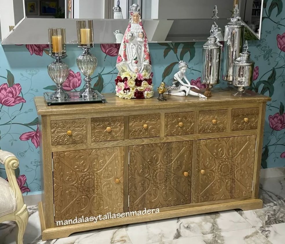 Mueble recibidor tallado a mano